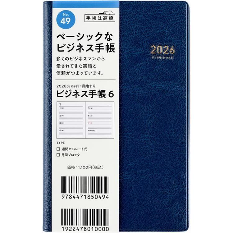 2025年12月始まり 週間ブロック B7 ビジネス手帳6(49)藍