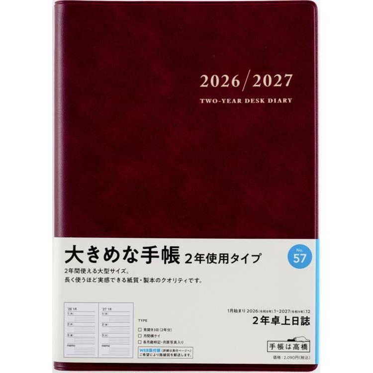 - 2026年1月始まり手帳 週間ブロック A5 2年卓上日誌(57)ワイン