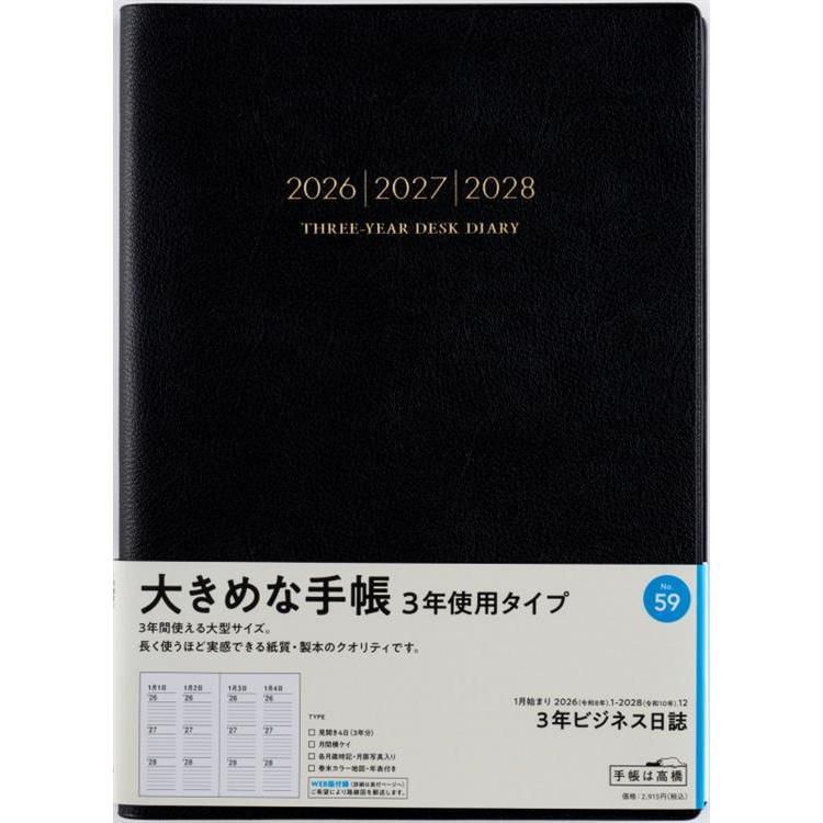 - 2026年1月始まり手帳 週間ブロック B5 3年ビジネス日誌(59)黒