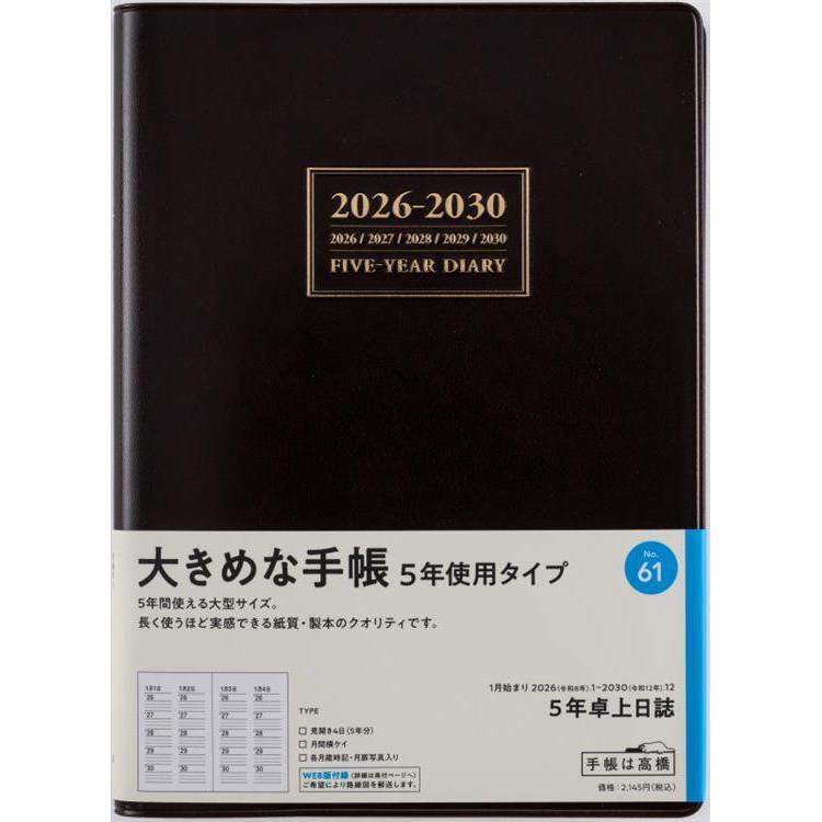- 2026年1月始まり手帳 週間ブロック A5 5年卓上日誌(61)茶