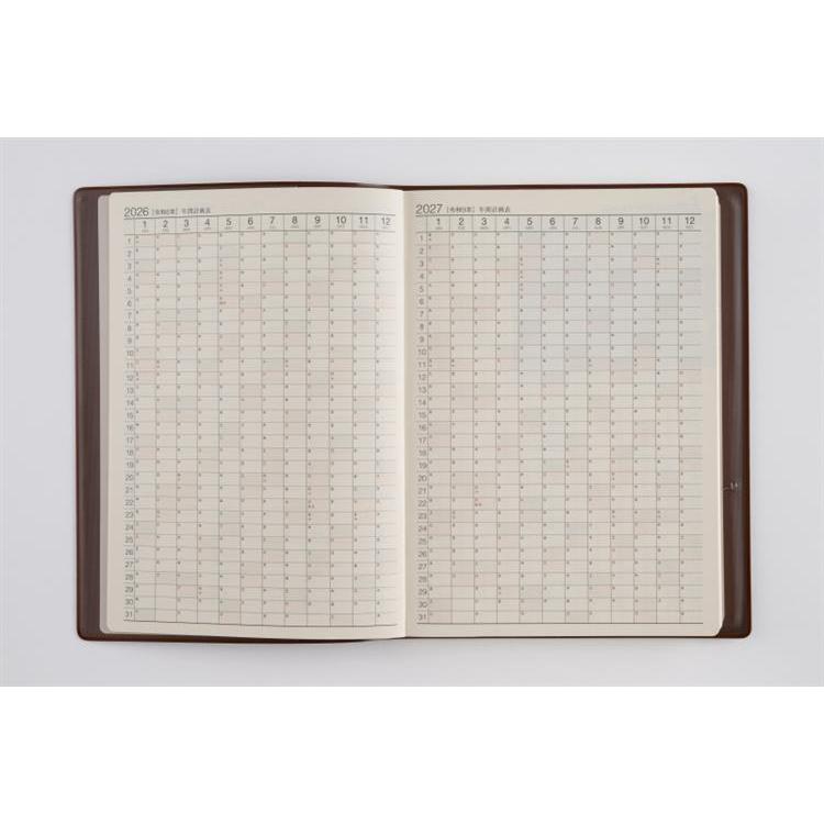 2026年1月始まり手帳 週間ブロック A5 3年卓上日誌(63)茶