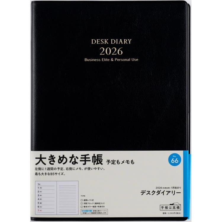 - 2026年1月始まり 週間レフト B5 デスクダイアリー(66)黒