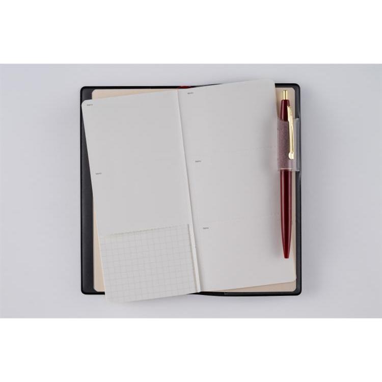 シンプルなカバーデザインに金色のロゴがワンポイント。多くのビジネスパーソンに愛されたベーシックな記入形式が人気。タイム目盛り付きのレフト式週間ページは、細かい時間ごとの予定管理に便利です。