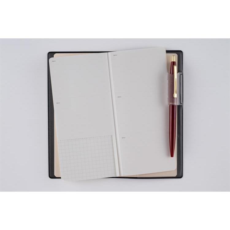 シンプルなカバーデザインに金色のロゴがワンポイント。多くのビジネスパーソンに愛されたベーシックな記入形式が人気。