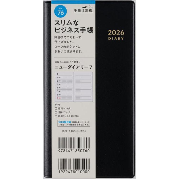 - 2025年12月始まり 週間レフト B7 ニューダイアリー7(76)黒