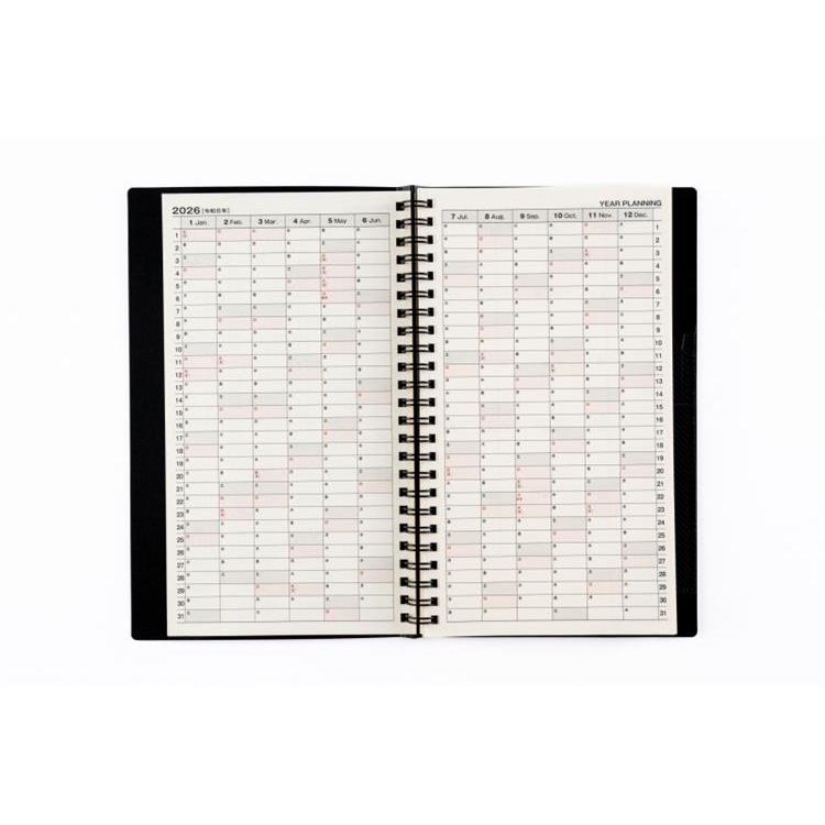 2026年1月始まり手帳 週間ブロック A5変型 リングスリム(93)黒