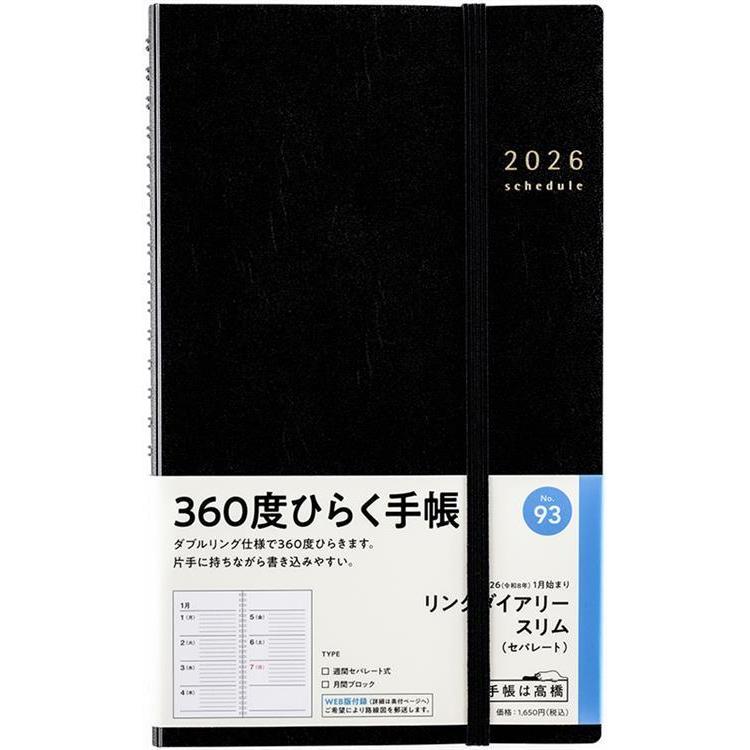 - 2026年1月始まり手帳 週間ブロック A5変型 リングスリム(93)黒