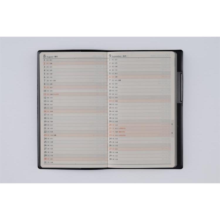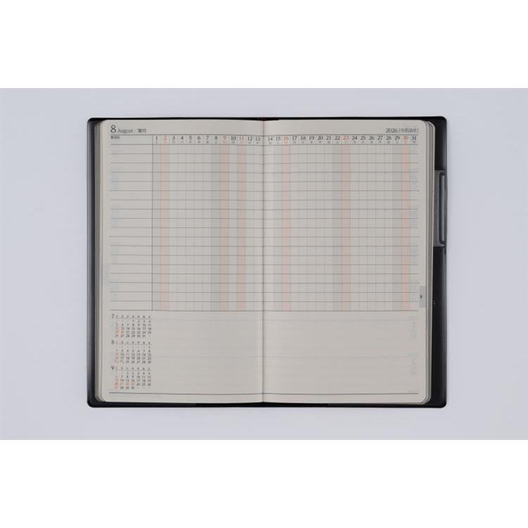 使いやすく、高級感のある皮革調。月ごとに項目別月間予定表が付いています。