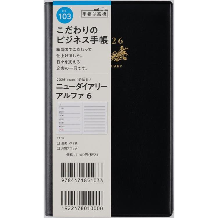 - 2025年12月始まり 週間レフト B7 ニューダイアリーアルファ6(103)黒