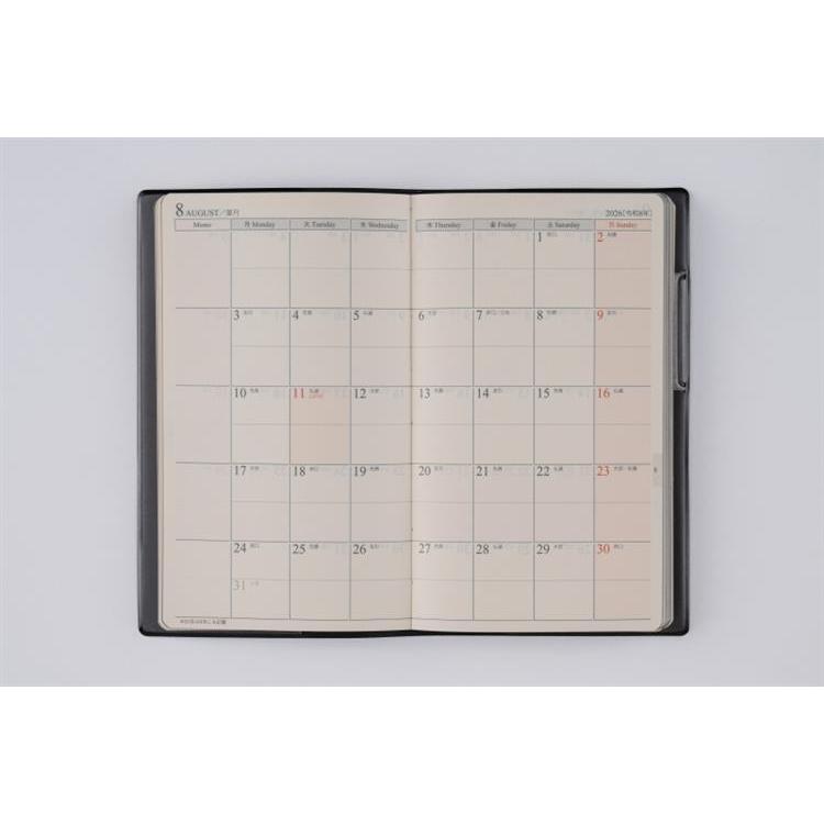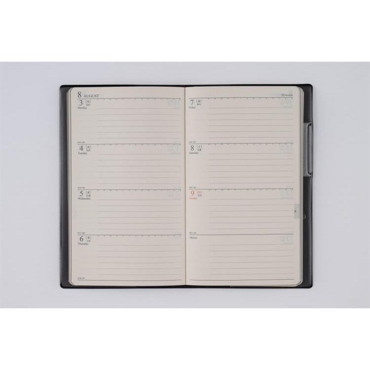 使いやすく、高級感のある皮革調。週間ページは1日の記入スペースが広いので、しっかり書き残したい方におススメです。
