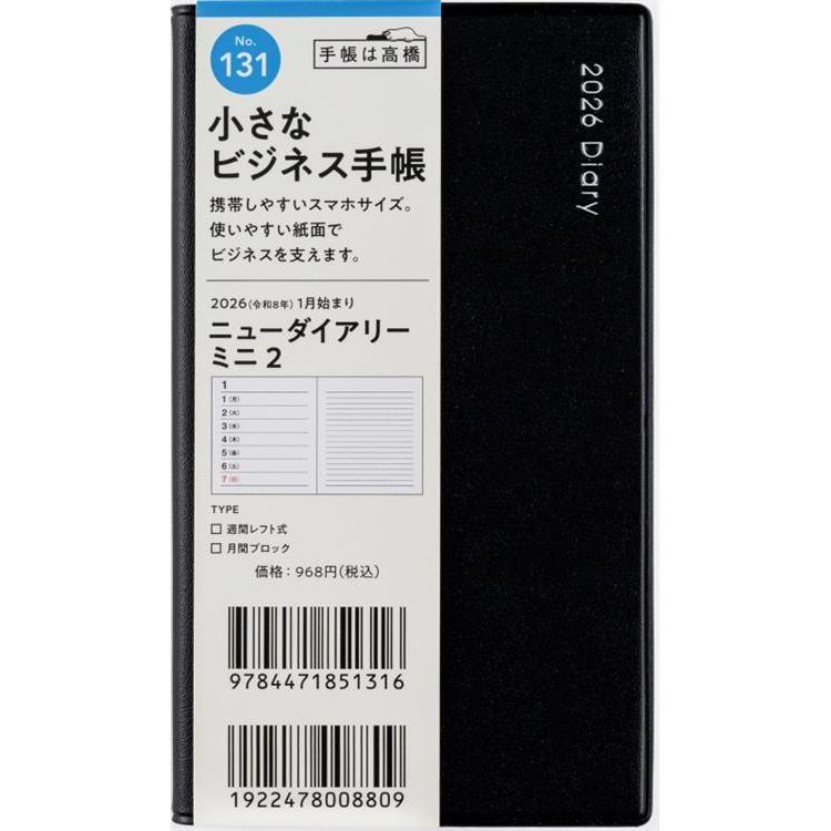 - 2025年12月始まり 週間レフト B7 ニューダイアリーミニ2(131)黒