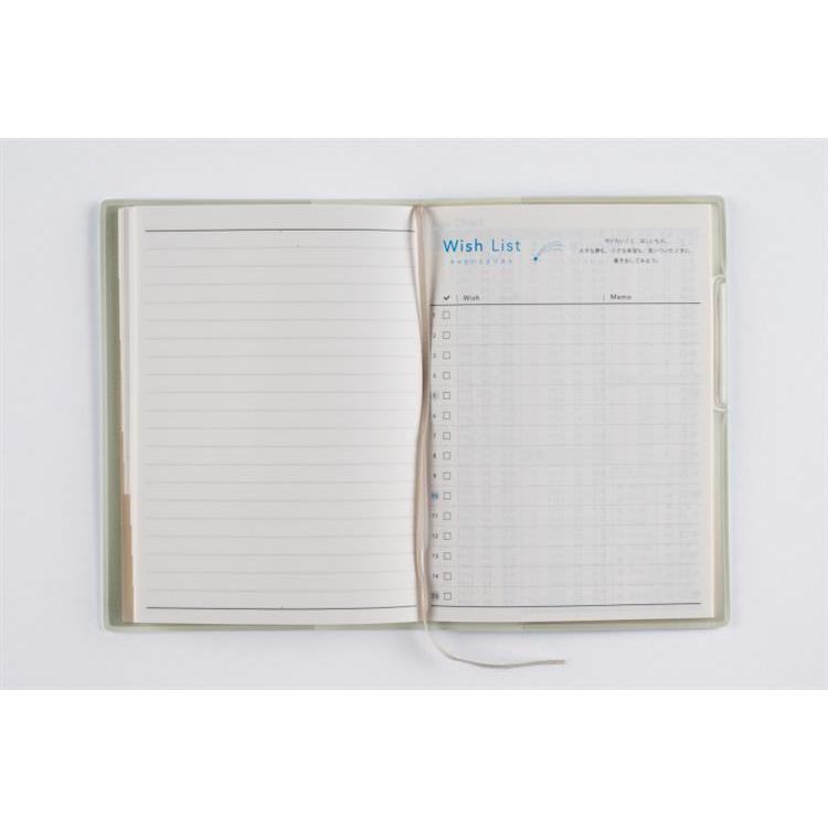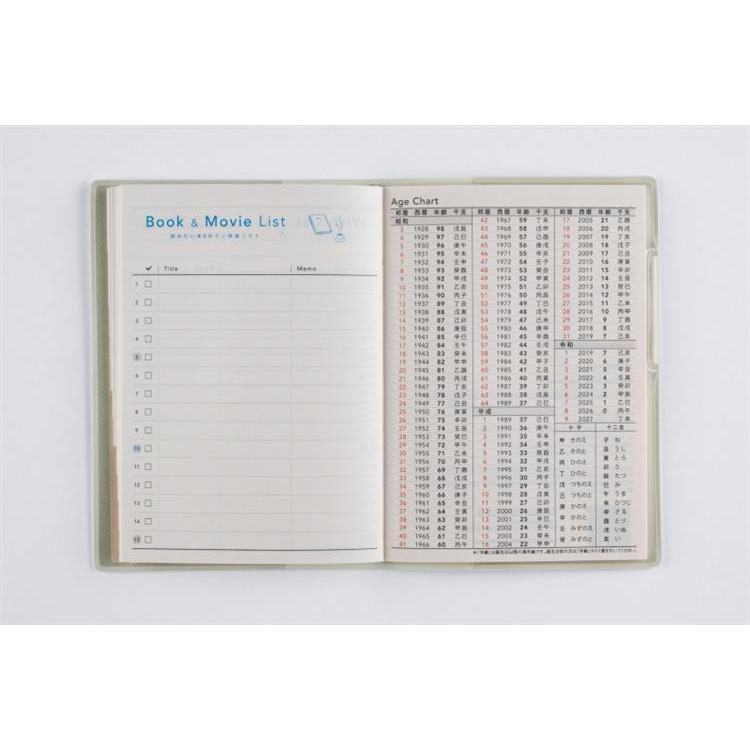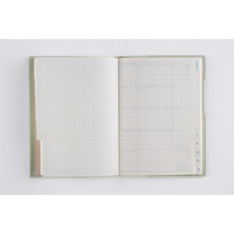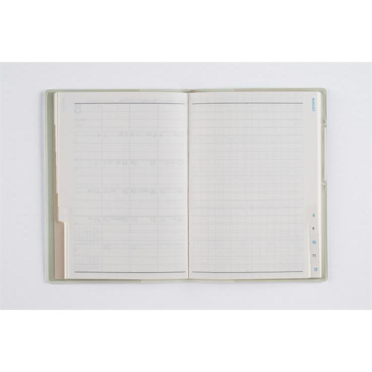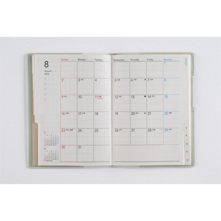 月間ページとメモページのみのシンプルな手帳。薄くて軽いので、カバンの中でも邪魔にならず持ち歩けます。
