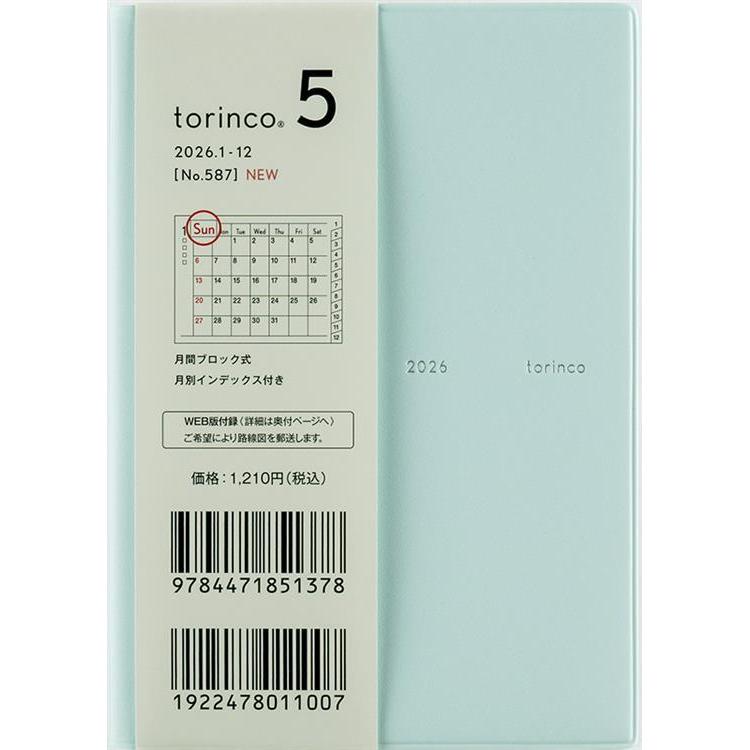 - 2025年12月始まり手帳 月間 B7 トリンコ5(587)ライトアクア