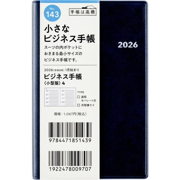 2025年12月始まり 週間ブロック B7 ビジネス手帳 小型版4(143)紺