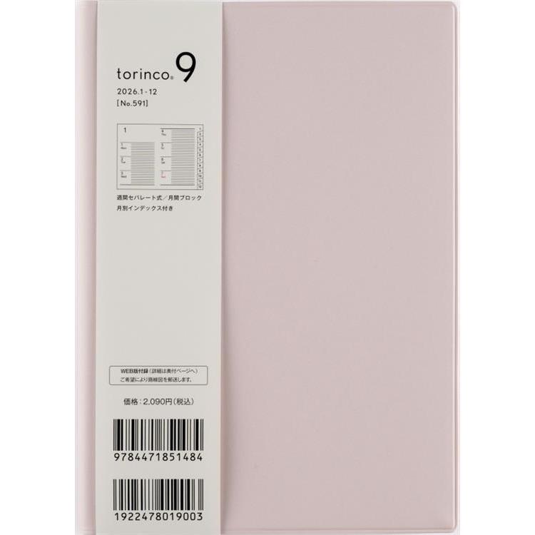 - 2026年1月始まり手帳 週間ブロック B6 トリンコ9(591)ピンクベージュ