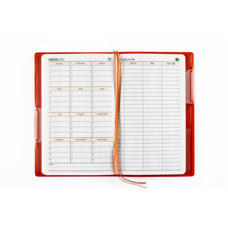カバーはダブルペンホルダー付きで、2つのペンホルダーにペンを1本差し通せば、カバンの中でも手帳が開かず便利! 小さいサイズながら、切り取りメモなど充実の付録数です。