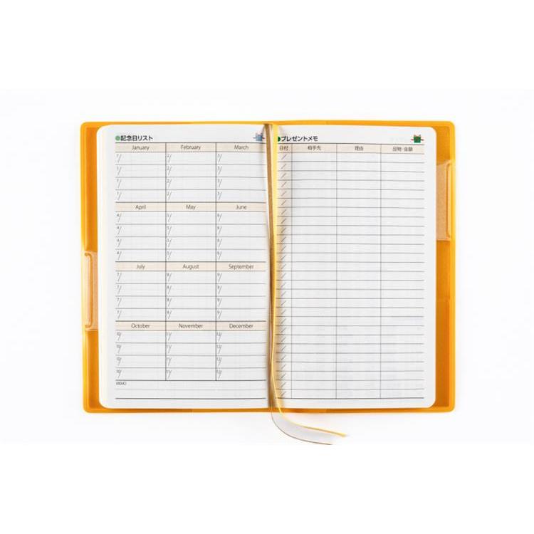 カバーはダブルペンホルダー付きで、2つのペンホルダーにペンを1本差し通せば、カバンの中でも手帳が開かず便利! 小さいサイズながら、切り取りメモなど充実の付録数です。