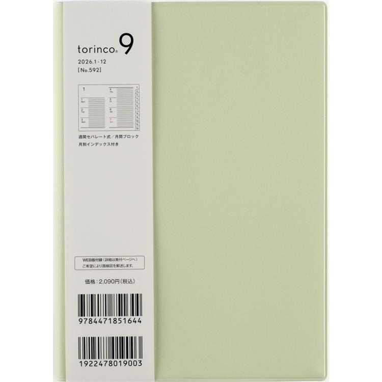 - 2026年1月始まり手帳 週間ブロック B6 トリンコ9(592)セージグリーン