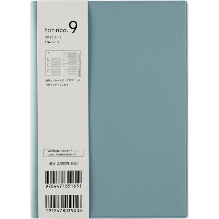 - 2026年1月始まり手帳 週間ブロック B6 トリンコ9(593)ダルブルー