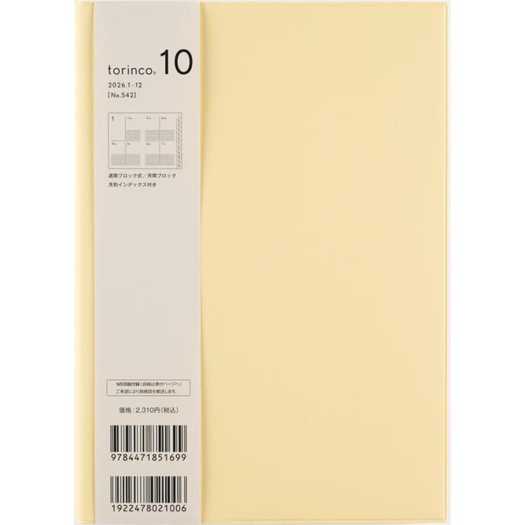 2026年1月始まり手帳 週間ブロック A5 トリンコ10(542)バターイエロー
