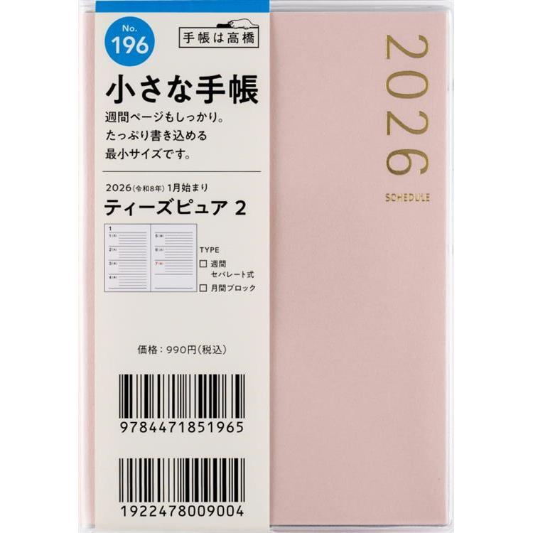 - 2025年12月始まり手帳 週間ブロック B7 ティーズピュア2(196)ピンク