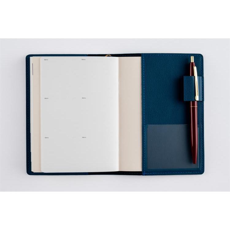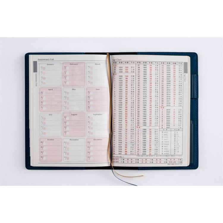 手軽な大きさながら、月別のインデックスやペンホルダーがついた高機能シリーズ。カバーの皮革調らしい色の濃淡も、魅力のひとつ。