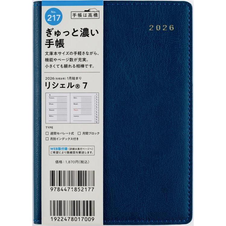 - 2026年1月始まり手帳 週間ブロック A6 リシェル7(217)コーンフラワーブルー