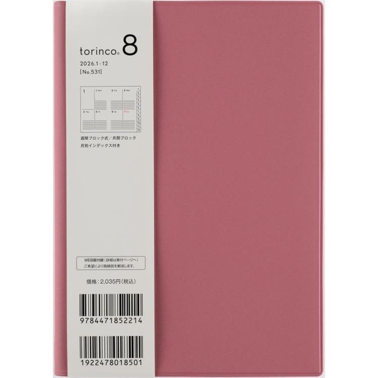 - 2026年1月始まり手帳 週間ブロック B6 トリンコ8(531)ローズウッド