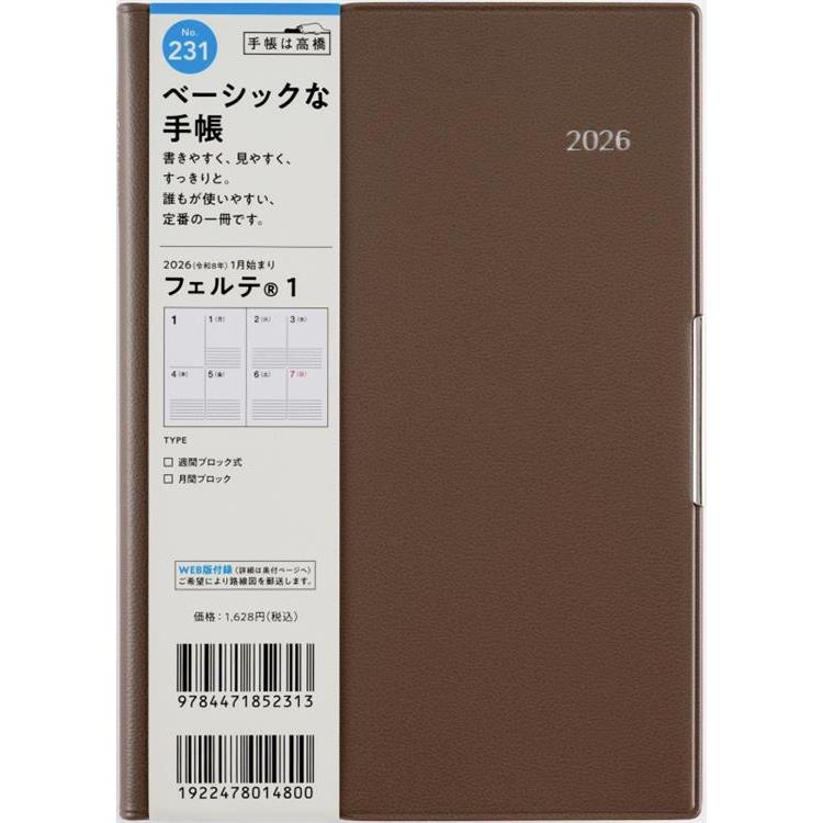 - 2025年12月始まり手帳 週間ブロック B6 フェルテ1(231)グレージュ