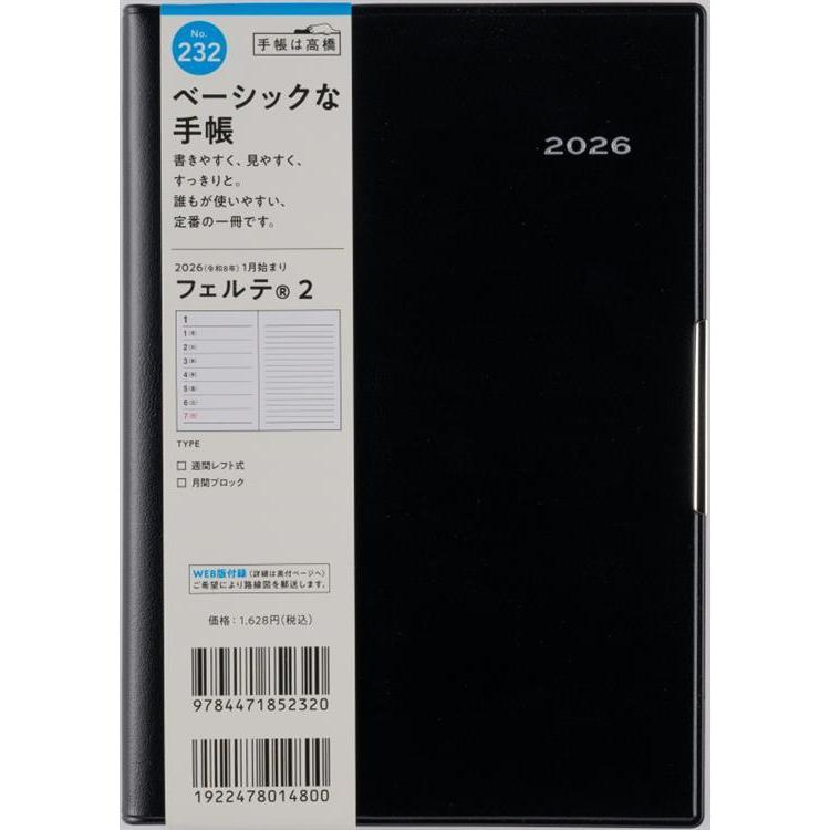 - 2025年12月始まり手帳 週間レフト B6 フェルテ2(232)黒