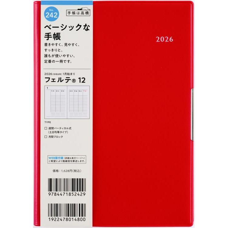 2025年12月始まり手帳 週間バーチカル B6 フェルテ2(242)モーヴピンク