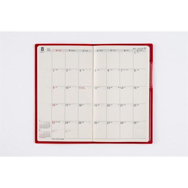 「薄さ」と「軽さ」が人気の土日均等タイプ。1冊目にはもちろん、趣味用のサブ手帳としてもオススメ。カレンダー感覚で見やすい日曜始まり。