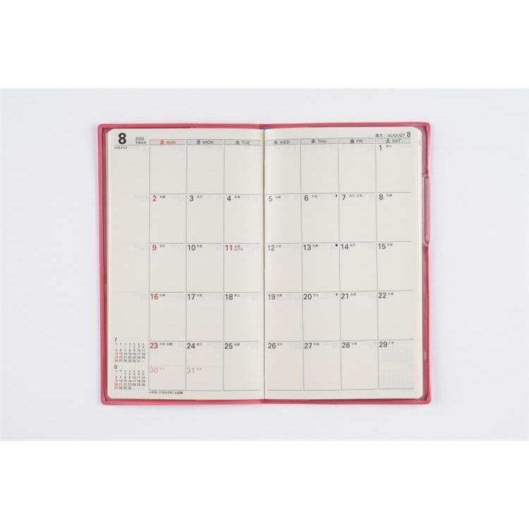 「薄さ」と「軽さ」が人気の土日均等タイプ。1冊目にはもちろん、趣味用のサブ手帳としてもオススメ。カレンダー感覚で見やすい日曜始まり。