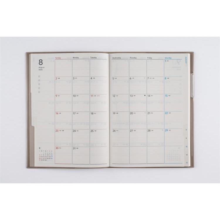 月間ページとメモページのみのシンプルな手帳。大判のA5判は、予定をしっかり書き残したい方におすすめ。月別インデックス付き。