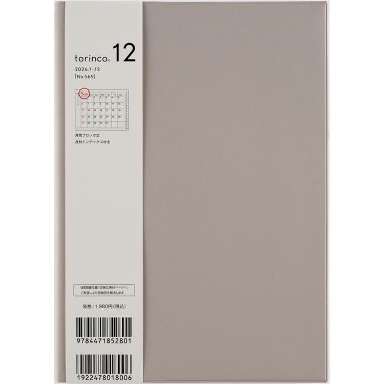 2025年12月始まり手帳 月間 A5 トリンコ12(565)ソフトグレー