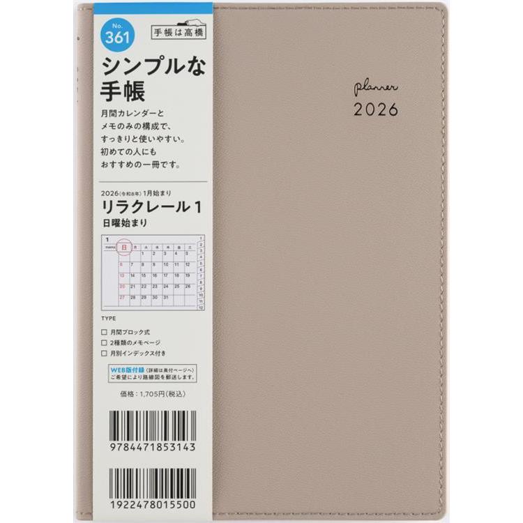 2025年12月始まり手帳 月間 B6 リラクレール1(361)カフェモカ