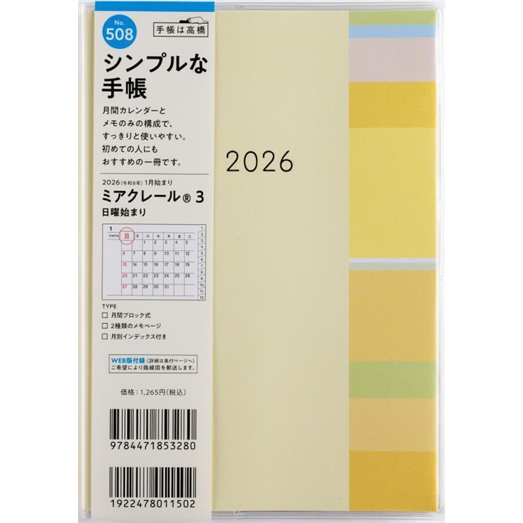 - 2025年12月始まり手帳 月間 B6 ミアクレール3(508)イエロー