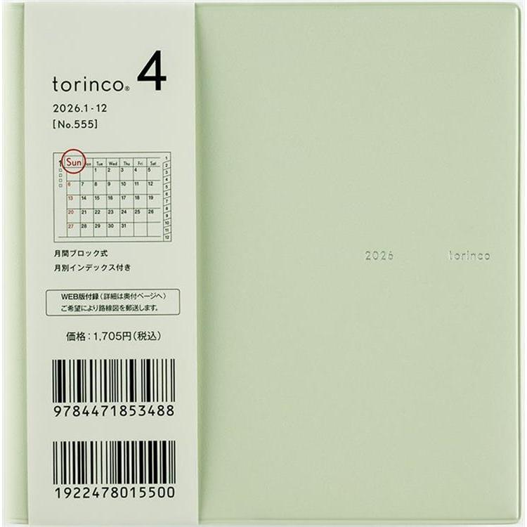 2025年12月始まり手帳 B6変型M トリンコ4(555)ミルクグリーン