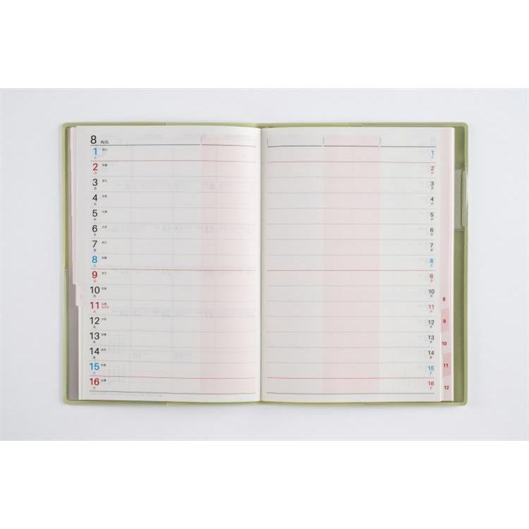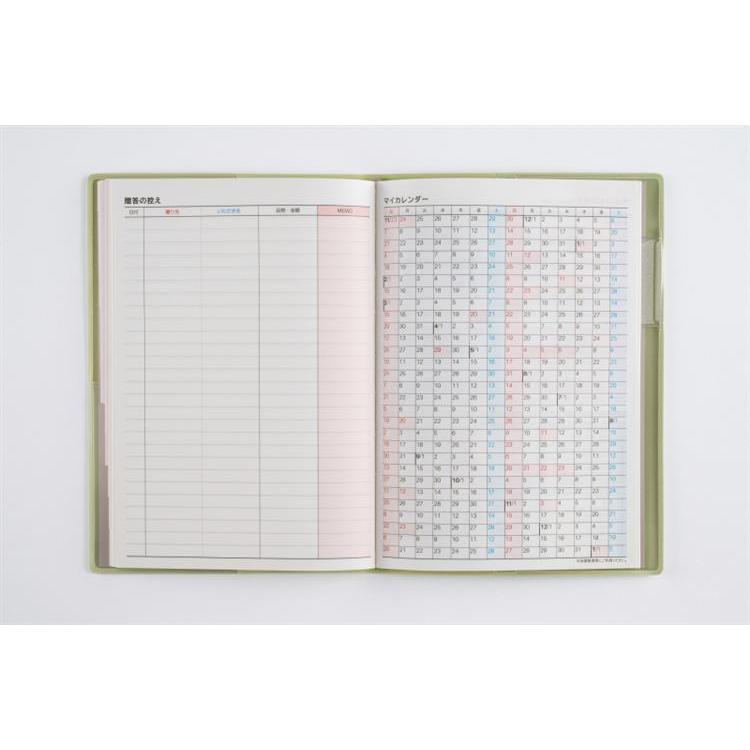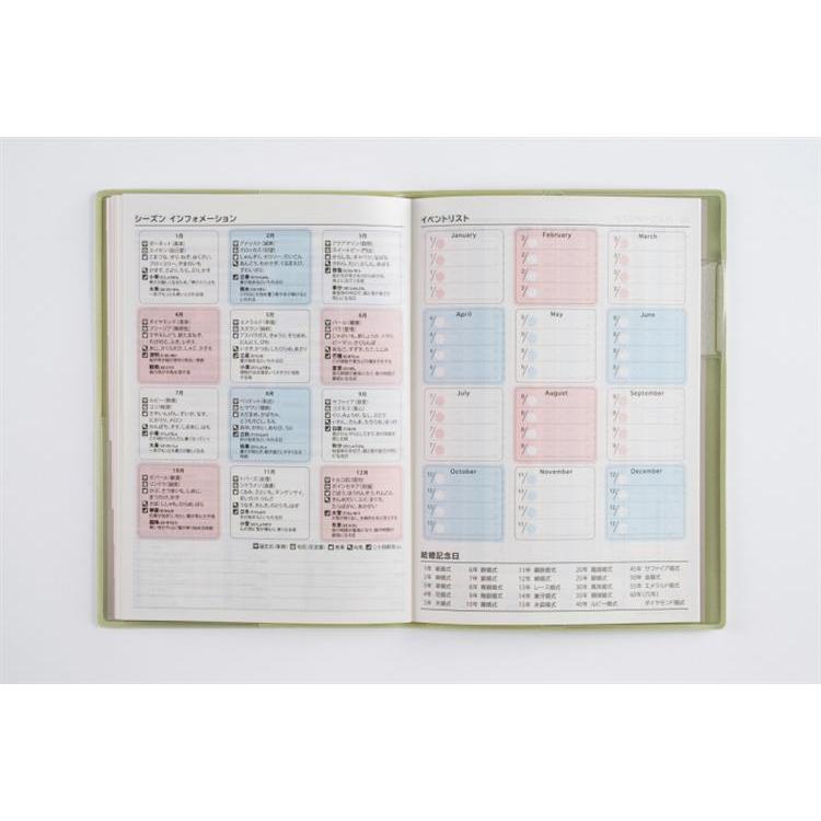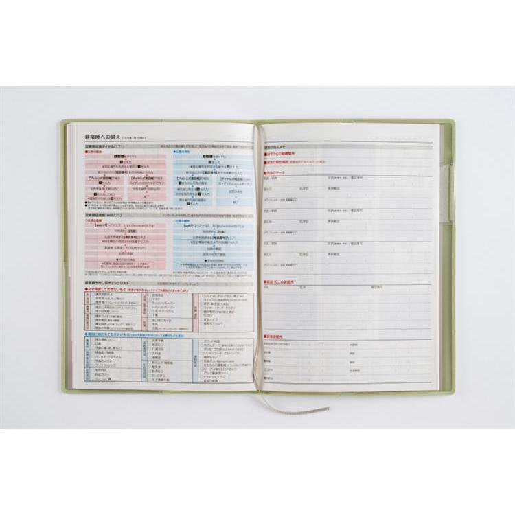 月間ブロック式と横ケイ式、2種類の月間ページがついているので、家族の予定も複数の予定も1冊で管理できます。生活に役立つ付録も充実。カバーは気持ちをあげてくれる、上質感のあるハーブグリーン。
