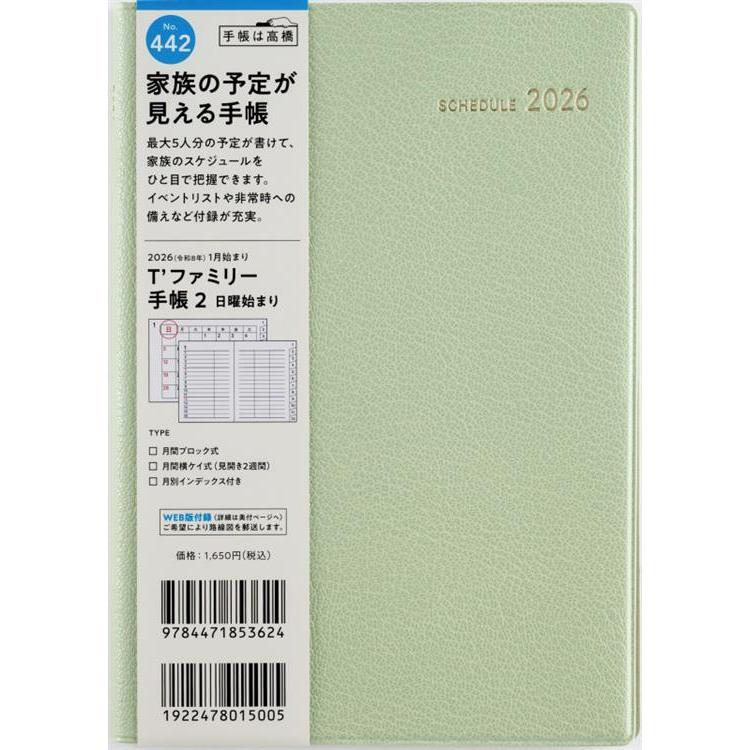 2025年12月始まり 月間 B6 ティーズファミリー手帳2(442)リュクスハーブグリーン