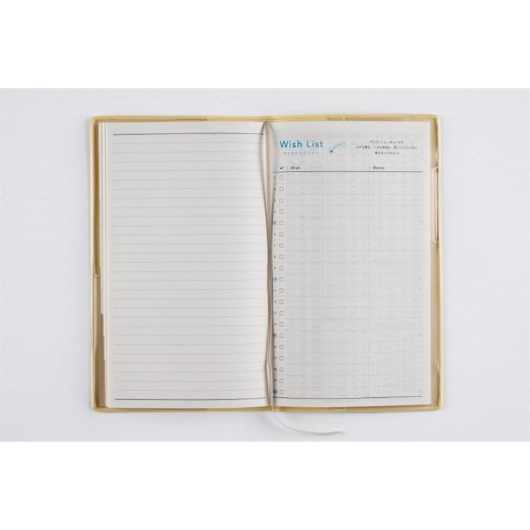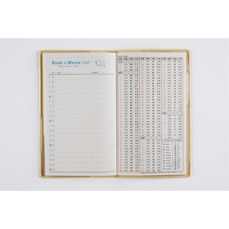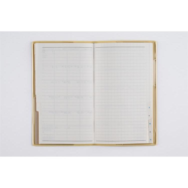 月間ページとメモページのみのシンプルな手帳。付箋やカード、シールが収納できるクリアポケット付きです。