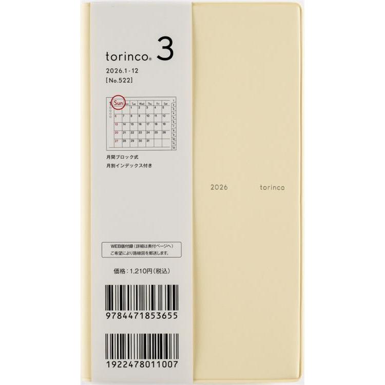 2025年12月始まり手帳 月間 B7 トリンコ3(522)バターイエロー