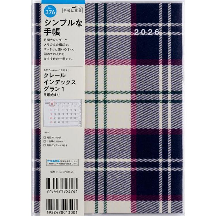 2025年12月始まり手帳 月間 A5 クレールインデックスグラン1(376)チェック