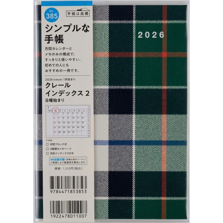 - 2025年12月始まり手帳 月間 B6 クレールインデックス2(385)チェック