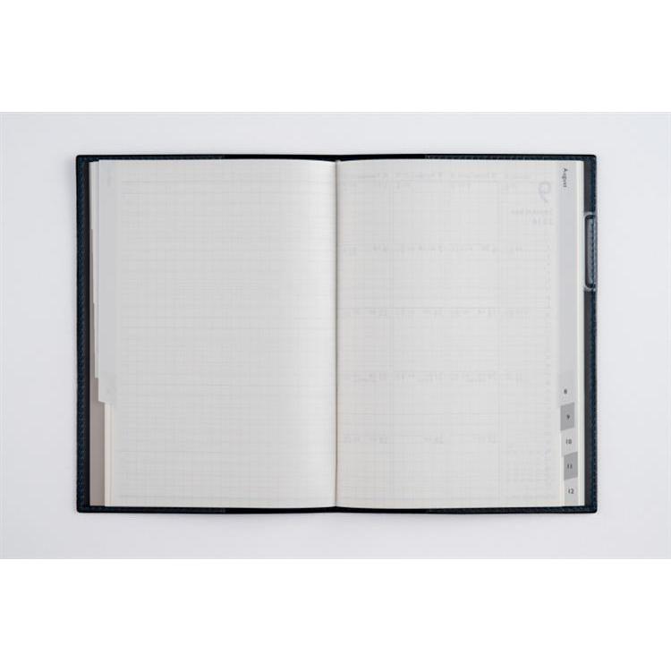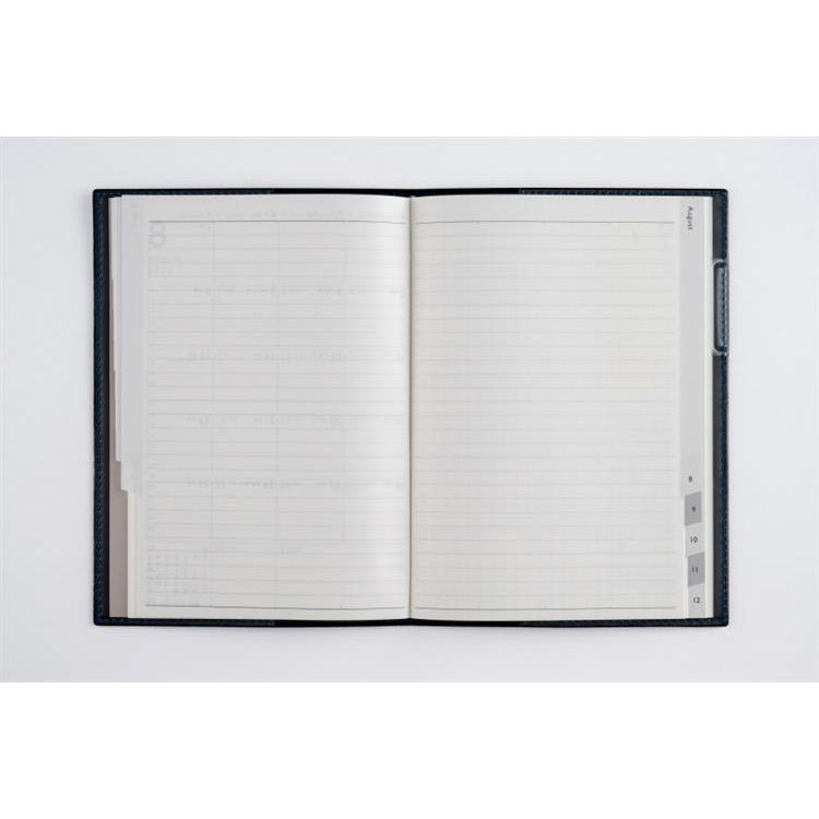 シックなカラーでステッチ入りのカバーは、毎年細部にまでこだわって製作しています。記入スペースと持ち運びやすさのバランスがいいB6サイズ。