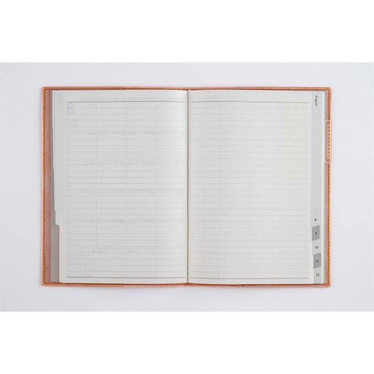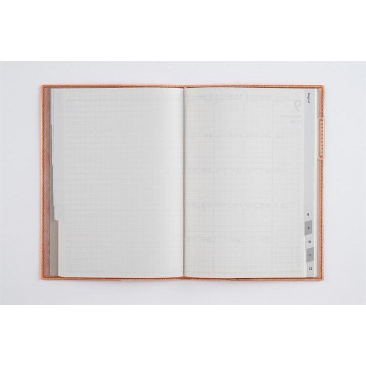 シックなカラーでステッチ入りのカバーは、毎年細部にまでこだわって製作しています。記入スペースと持ち運びやすさのバランスがいいB6サイズ。