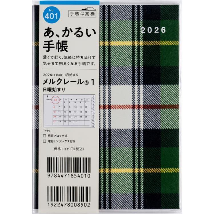 2025年12月始まり手帳 月間 A6 メルクレール1(401)チェック