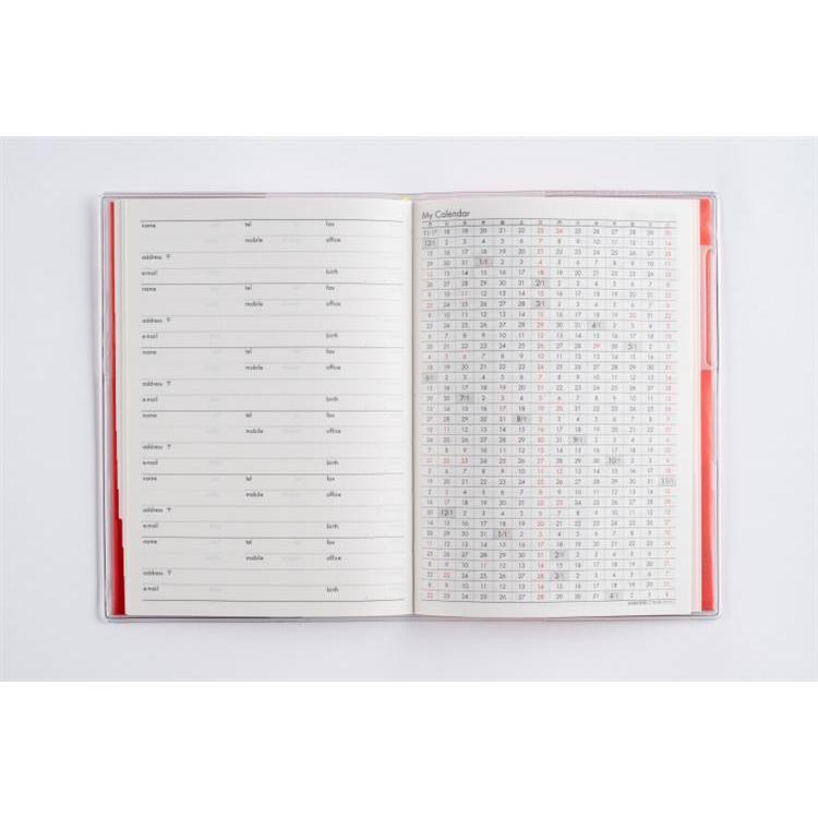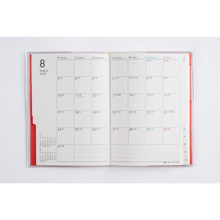 月間予定表のみの薄型タイプで、小さなカバンにもおさまりやすいハンディサイズ! 便利な月別インデックス付き。