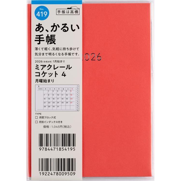 2025年12月始まり手帳 月間 A6 ミアクレールコケット4(419)レッド