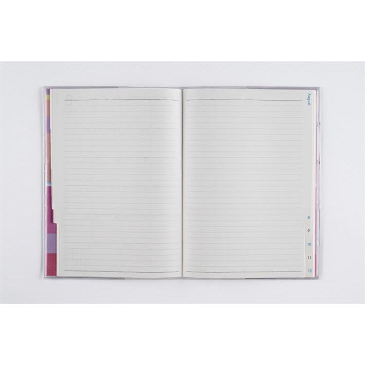 月間予定表のみの薄型タイプで、職場や自宅でゆったり書けるA5判。メモページも多いので、書きたい量が多い方にオススメです。便利な月別インデックス付き。